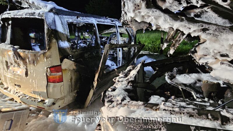 Am 08.08.2025 wurden wir um 00:08 Uhr zu einem brennenden Wohnmobil in Oberammergau alarmiert. Anlässlich des Heimatsound Festivals waren schon einige Festivalbesucher seit dem Vorabend im Ort und der Parkplatz an der Passionswiese war bereits gut belegt.