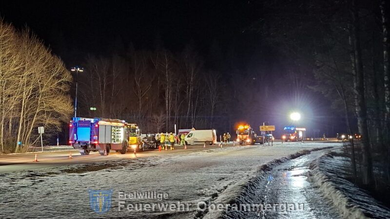 Am Dienstagabend, den 20.01.2026 um 17:42 Uhr wurden wir zu einem Verkehrsunfall auf der B23 im Bereich der Einfahrt Oberammrgau-Süd alarmiert.