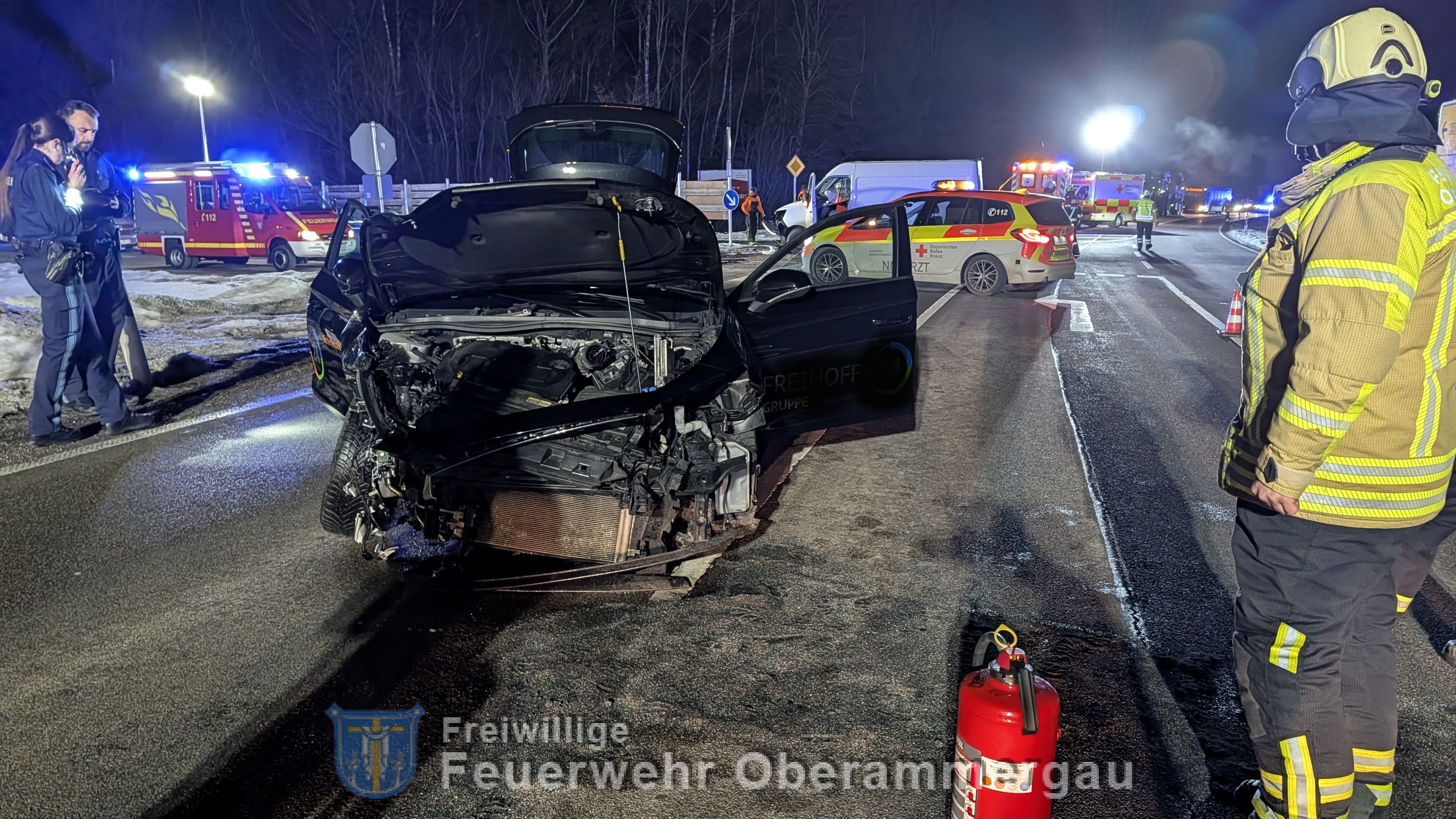 Weitere Kräfte: Abschleppdienst, ATS Oberau, Notarzt, Polizei, Rettungsdienst